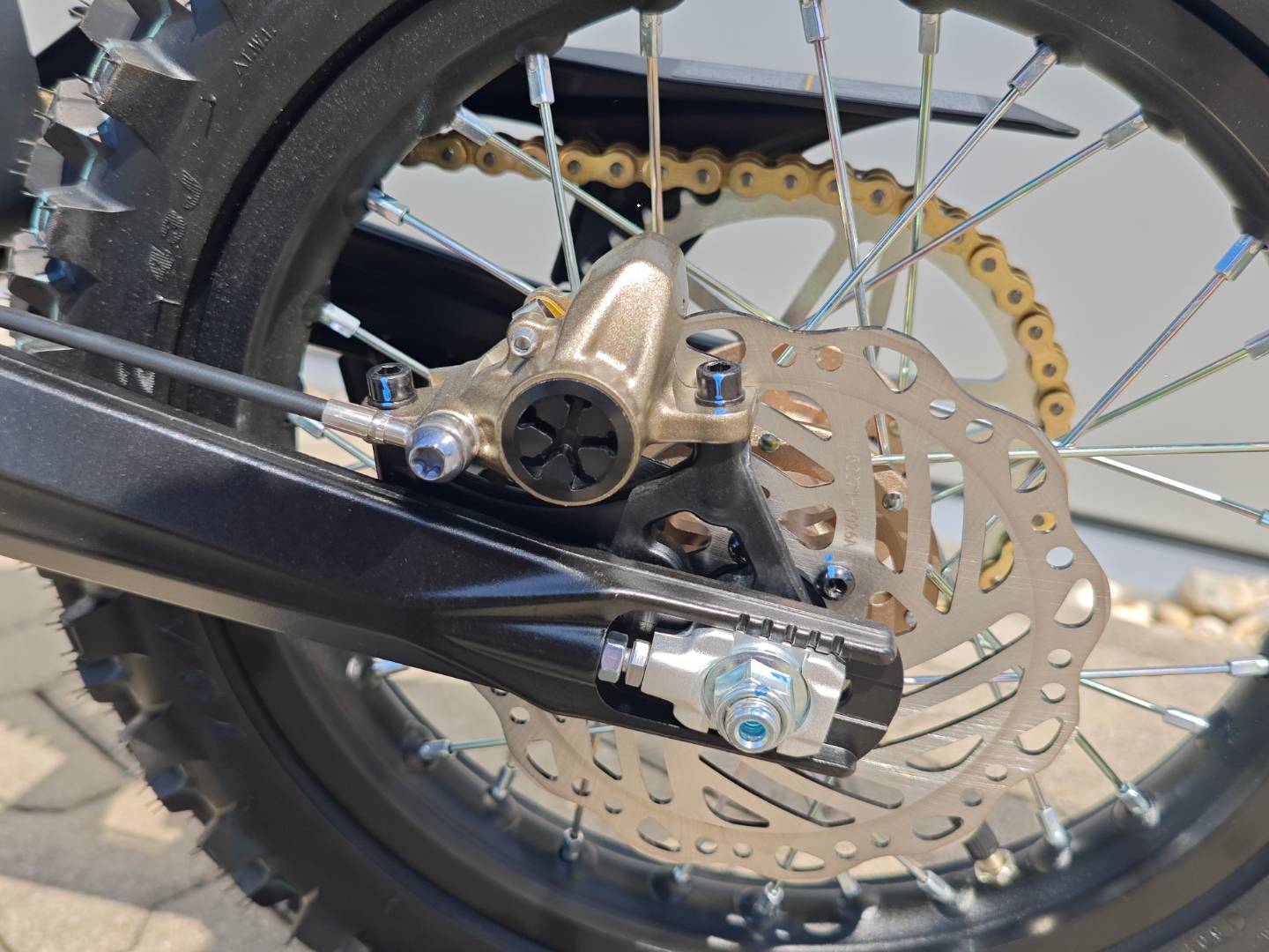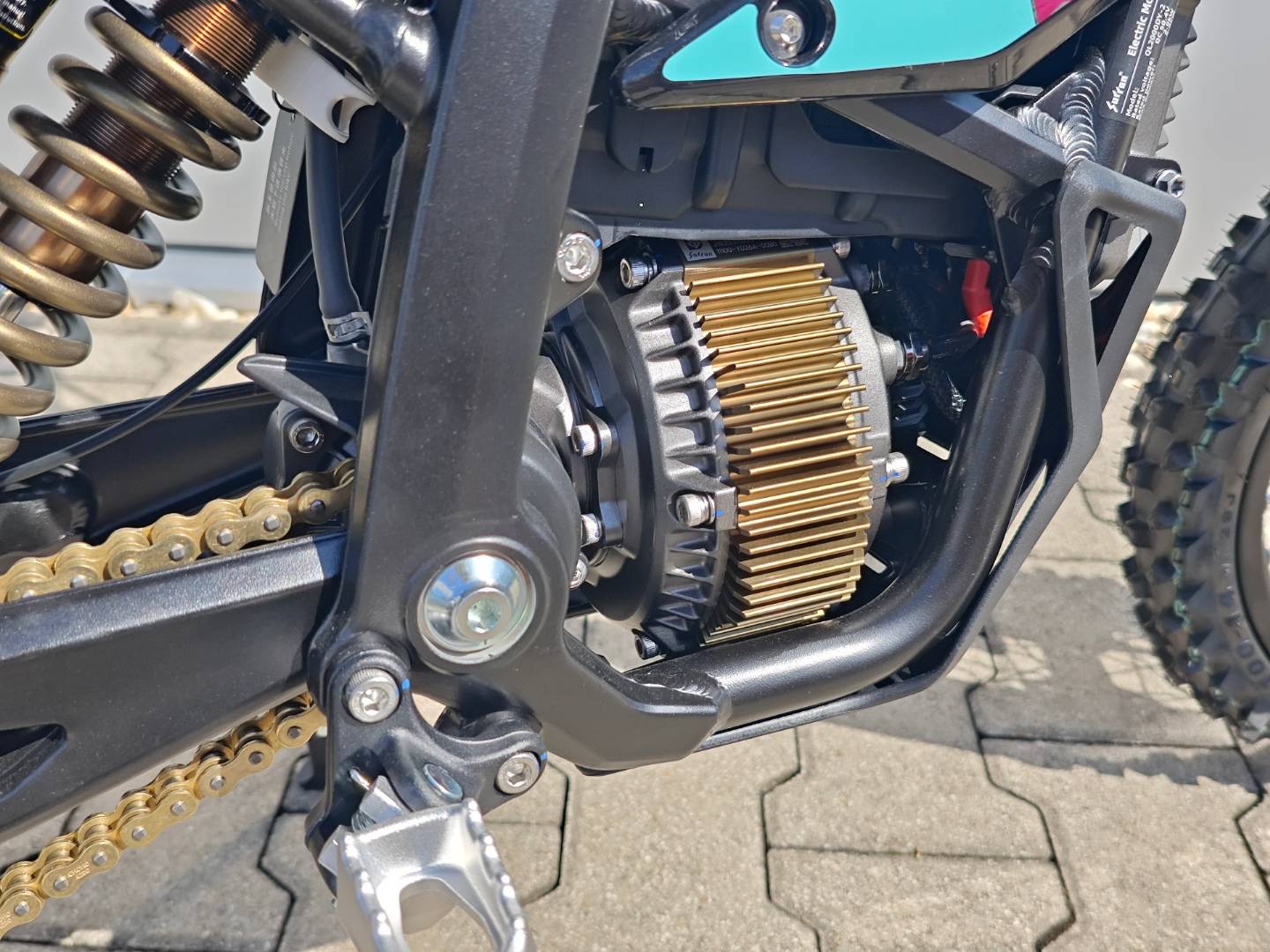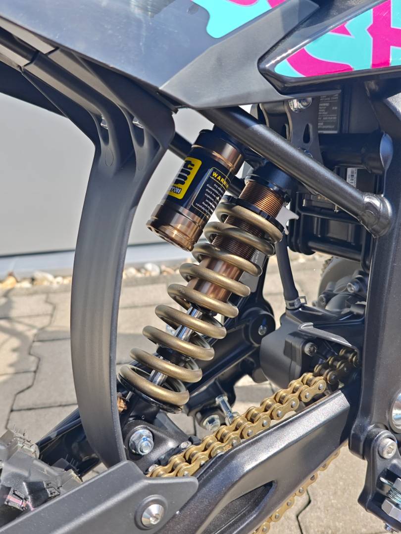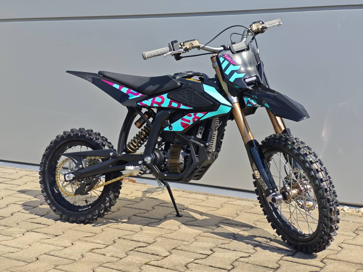 Rozmery: 1500m x 680mm x 885mm Hmotnosť: 39kg Max.krútiaci moment: 159N.m. Nosnosť: 65kg Maximálny výkon: 5kw Typ Batérie: 50,4V / 25Ah Lítium-iónová batéria Maximálna rýchlosť: 55km/h Dojazd (pri 40km/h, WMTC): 50km Jazdné režimy: 1 / 2 / 3 / Spätný chod R Materiál rámu: vysokopevná kovaná hliniková zliatina Predné odpruženie: Celková dlžka 625mm, zdvih 17mm Zadné odpruženie: 60mm / 185mm Pohon: primárny ozubený prevod + sekundárny reťazový pohon Diaľkové ovádanie: Funkcia interkomu – Nastavenie výkonu Bezpečnostné funkcie: Magnetický núdzový vypínač – Núdzové vypnutie Čas nabíjania (20% – 80%): 2,5h Zrýchlenie 0-30 km/h: 1,5s zrýchlenie 0-50 km/h: 3,6s Viac informácií nájdete na našej web stránke: https://surron.euromotor.sk/modely/sur-ron-hyper-bee/